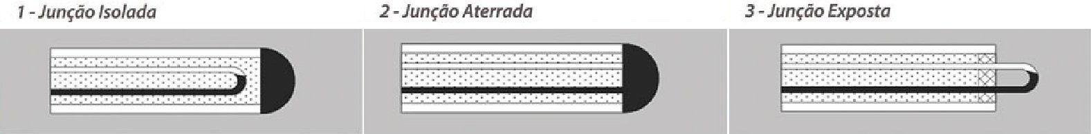 ATERRADA: Os fios estão soldados à bainha metálica formando a junta de medição, tornando o tempo de resposta mais rápido, porem, não pode ser utilizado em locais sujeitos à ruídos elétricos;